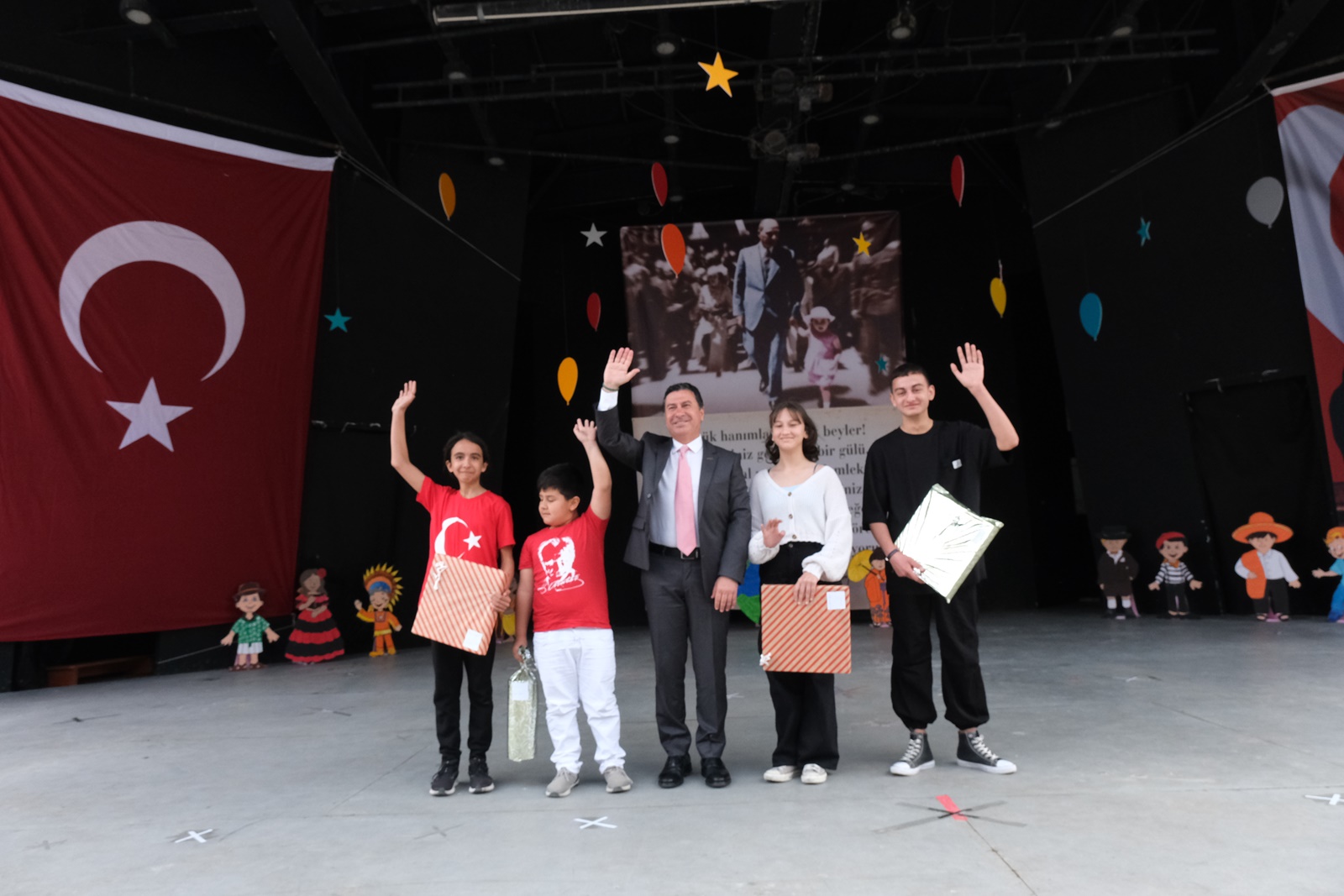 “Ulu Önderimiz Atatürk’ün bizlere miras bıraktığı bu vatana sahip çıkarak O’nun ilkeleri ışığında hep birlikte ilerleyeceğiz. Çocuklarımızı çağdaş ve modern dünyamızda bilimin ışığında yetişmeleri için var gücümüzle çalışacağız. Ata’mızın onlara armağan ettiği 23 Nisan Ulusal Egemenlik ve Çocuk Bayramlarını kutluyorum.” Diyerek sahnede yanında olan çocuklarla birlikte şarkılar söylediler.