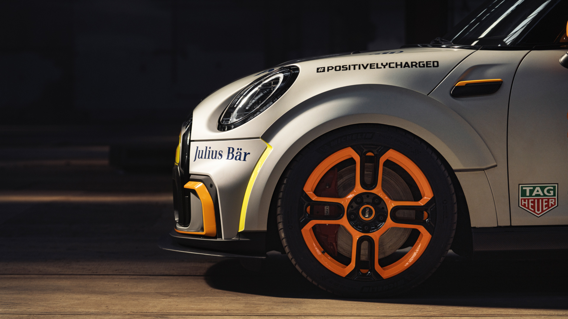 Şimdiye kadar üretilen en dinamik MINI modeli unvanını taşıyan MINI E-Pacesetter pist kullanımı için özel olarak tasarlandı. Aracın içinde ve dışında yer alan John Cooper Works imzalı parçaları, karatılmış radyatör ızgarası ve MINI Electric logosu otomobilin elektrikli oluşuna gönderme yapıyor. Izgaranın üst tarafı, motor soğutmasına ihtiyaç duymadığı için ön uç aerodinamiğe yardımcı olması amacıyla büyük ölçüde kapatıldı. 18 inç boyutundaki çift renkli alaşım jantları otomobilin yan profilden güçlü duruşunu destekliyor.